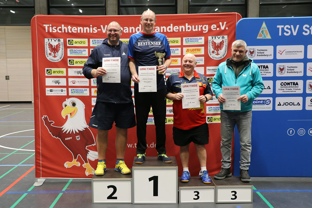 Am Wochenende vom 31.1. -2.1.2026 waren wir Ausrichter der Landesmeisterschaften der Senioren. In vielen Altersklassen gab es eine bemerkenswert hochkarätige Beteiligung und großartige Spiele zu bestaunen. Die Teilnehmerinnen und Teilnehmer fanden in der modernen Sporthalle erstklassige Bedingungen vor und auch etliche Zuschauer nahmen auf der Tribüne Platz. Ein herzlicher Dank gebührt unserem fleissigen Organisationsteam, das eine reibungslose Ausrichtung gewährleistete und für eine professionelle Atmosphäre sorgte.