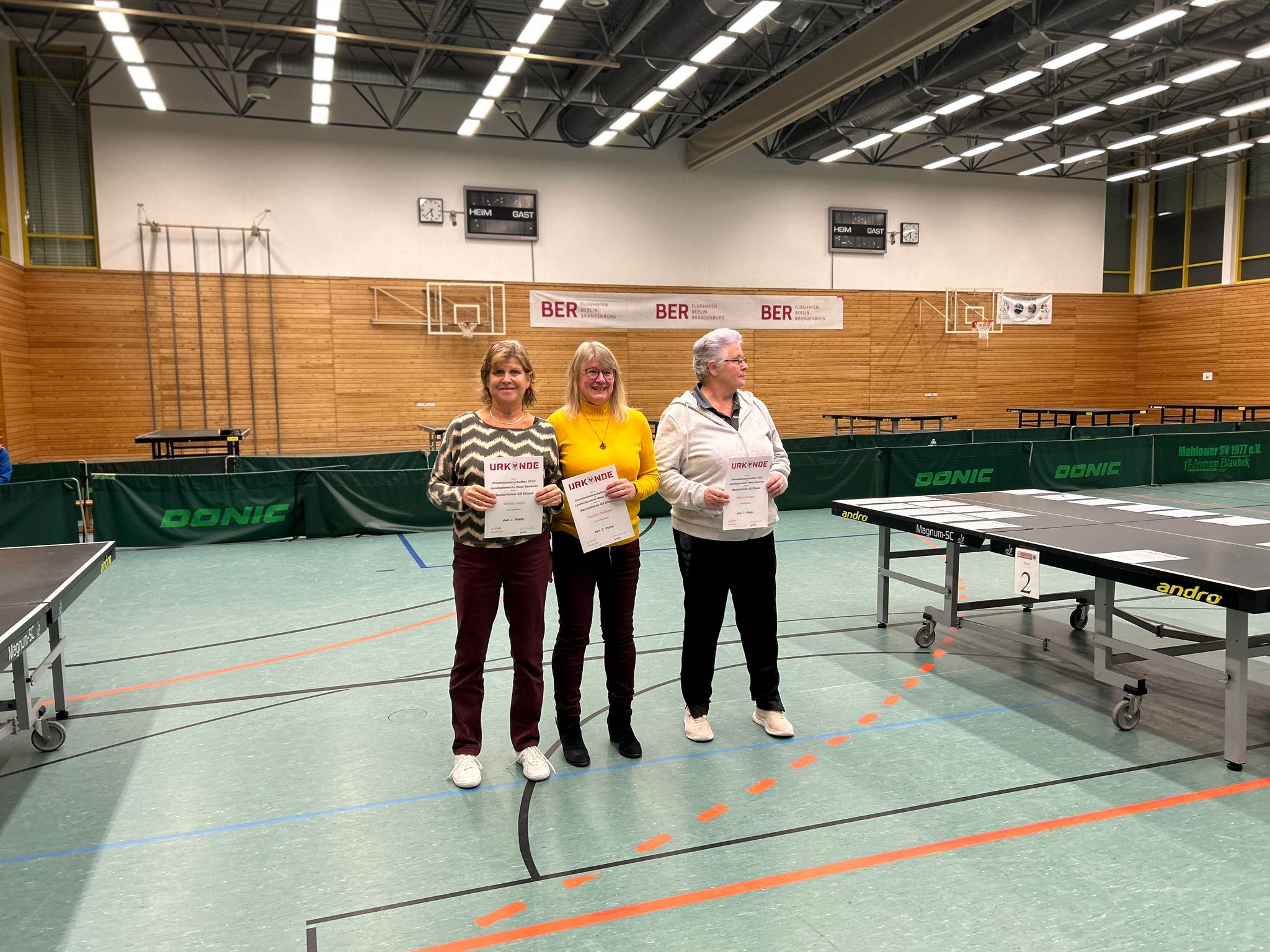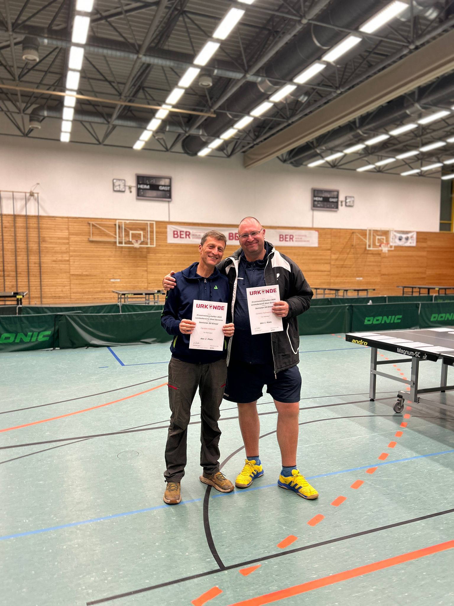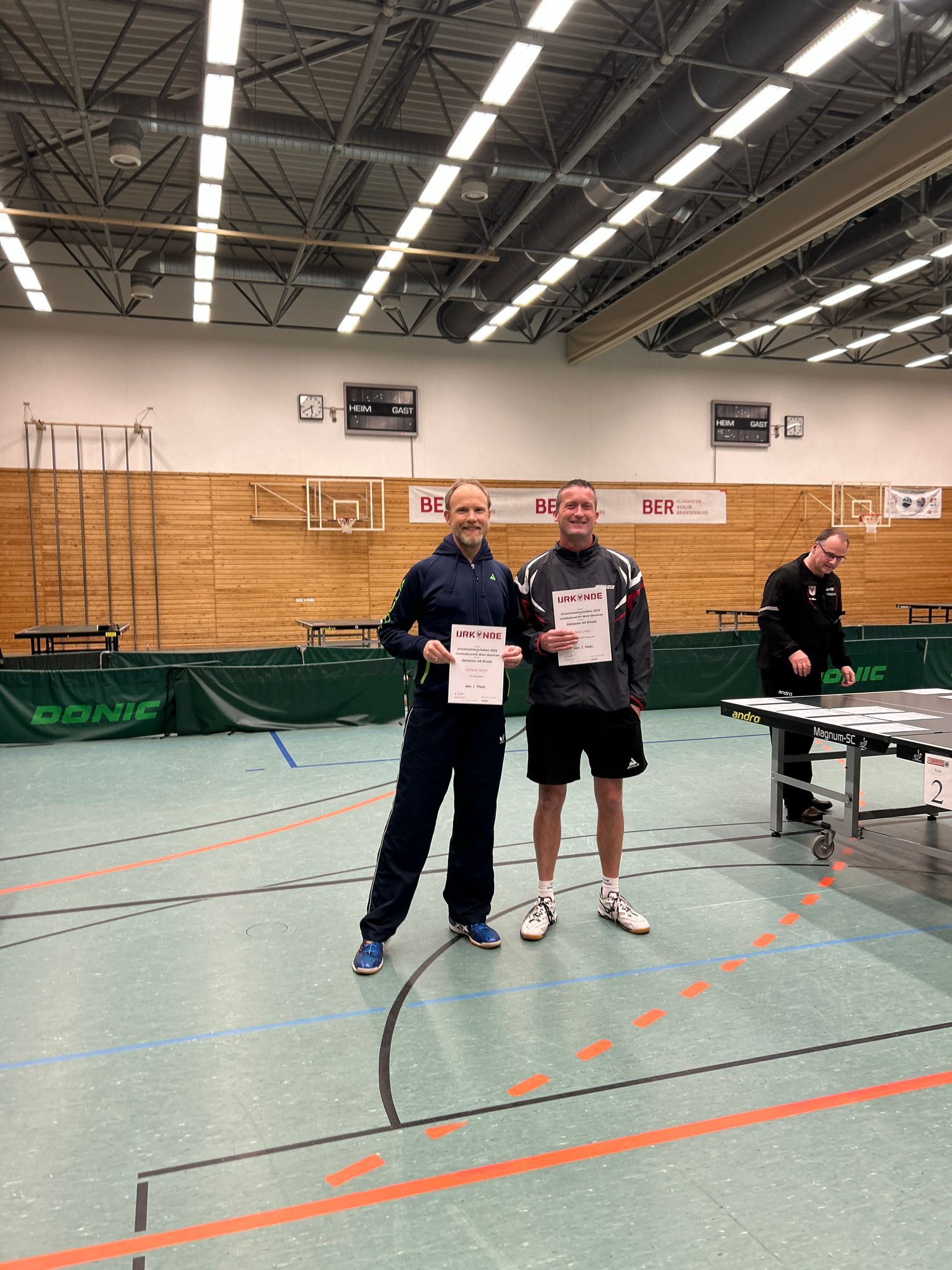 Bei den Senioren haben wir rekordverdächtige 19 Teilnehmer in den verschiedenen Altersklassen an den Start gebracht. Für viele eine gute Gelegenheit mal gegen höherklassige Spitzenspieler anzutreten und Erfahrungen zu sammeln. Dennoch gelangen uns auch hier wieder einige gute Platzierungen, Medaillen und Siege. Carlsson errang Platz eins in der AK 45 ebenso wie Carsten S. in der AK 55 der im vereinsinternen Finale Carsten K. besiegen konnte. Bei den Damen konnten Kerstin und Vroni ihre Altersklassen gewinnen.
